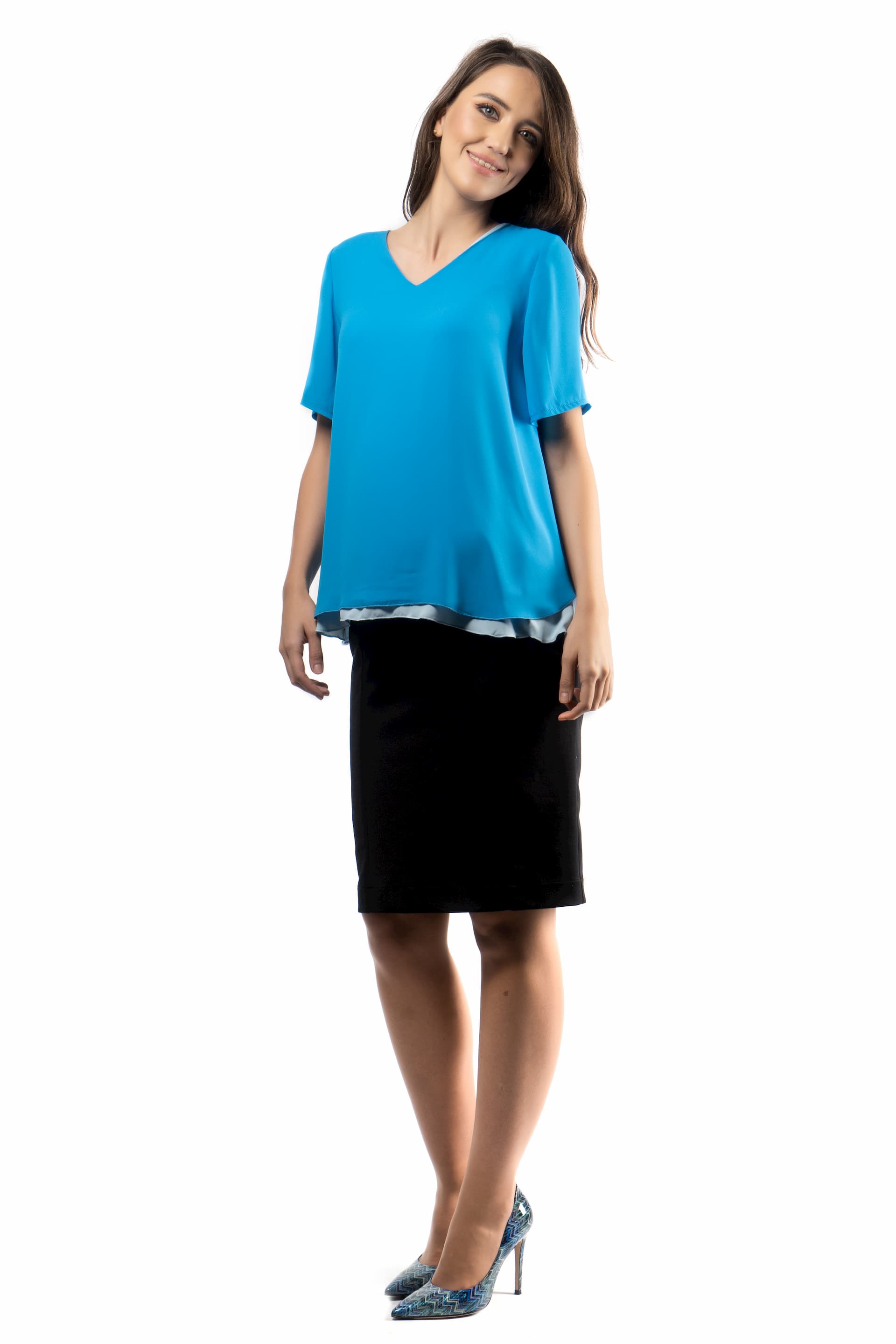 Bluza pentru gravide, in doua straturi, in nuante frumoase de albastru, ideala pentru sarcina dar si oricand dupa